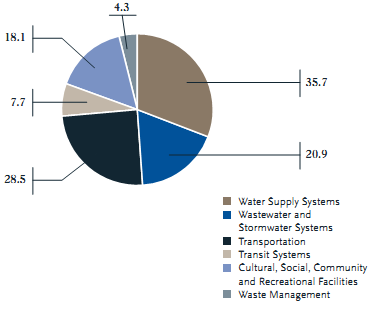 Unlike the $123-billion municipal infrastructure deficit, the estimate of new infrastructure needs does not necessarily represent a funding shortfall. It is simply a projection of overall investments required to meet growing or changing needs in our communities.