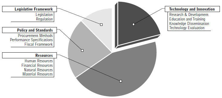 Policy and standards include performance specifications, procurement and fiscal framework. One key issue relates to present procurement practices, typically prescriptive and based on