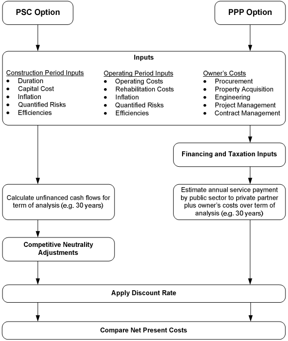 Figure 5 below summarizes the process described in Part 2 for determining the quantitative value for money by comparing the NPC of the alternative cash flows for a project.