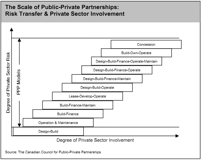 The following terms are commonly used to describe partnership models in Canada that would be considered P3s under The City's definition, although this should not be considered a definitive or complete listing3: