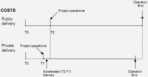 It is helpful to distinguish two types of Accelerated Delivery: on-time delivery (where services start at their planned date) and earlier investment (service delivery commences earlier than would otherwise have been possible). PPPs can accelerate the delivery of an infrastructure and related services in two main ways: