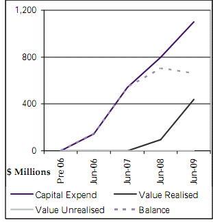 As at June 2009, the project has realised assets accepted into service to the value of $439m representing five MRH90 aircraft, Electronic Warfare Self Protection Support System, MRH Software Support Centre, and spares.