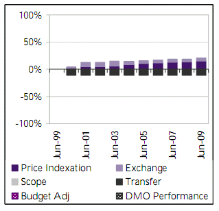 | Since Second Pass budget approval of $1,39201, price indexation and foreign exchange variations have accounted for $298m of total budget variation. Significant real variations include a transfer of $153m in July 1999 for procurement of Evolved Sea Sparrow Missiles (ESSM) by Project SEA 1428 Phase 2A ESSM. |