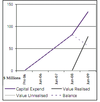 As at June 2009, the project has realised assets accepted into service to the value of $77m.35