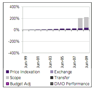 | Since Second Pass budget approval of $295m, price indexation and foreign exchange variations have accounted for $120m of total budget variation. The real variations are for approved increases to the number of vehicles: $155m in July 2007 for an additional 144, and $361m in August 2007 for an additional 293, Protected Mobility Vehicles for Enhanced Land Force and Overlander requirements respectively. |