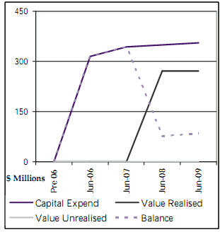 As at June 2009, the project has realised assets accepted into service to the value of $272m including the Fixed Network Core System.
