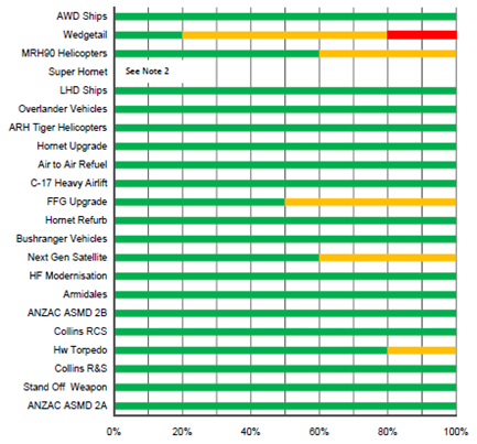 ● Wedgetail - the performance of phased array radar, which is central to the surveillance capability, will not meet the specification at final delivery. A radar remediation program is providing the basis for further work on improving the system's performance. Other current technical challenges involve the development of the electronic support measures, electronic warfare self-protection and ground support systems.