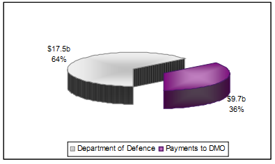 1.7 Figure 1.1 shows that the total budget for the Department of Defence in 2009-10 was $27.2b. Of this, $9.7b80 was budgeted for planned payments to the DMO under Purchaser Provider Arrangements to support the DMO's acquisition and sustainment activities. The figure demonstrates the significant investment made in DMO support to capability for the ADF, and when assessing the DMO budget as a whole ($10.7b in 2009-10), equates to 0.9% of Australia's Gross Domestic Product (GDP) in 2009-1081.