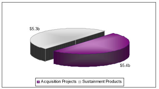 Figure 1.2 - Budget Allocation to Acquisition Projects and Sustainment Products 2009-10