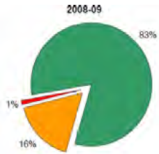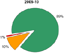 ● Green - The trend identified in previous MPRs is also reflected for 2009-10 with a high percentage (89%) of green MOEs reported;