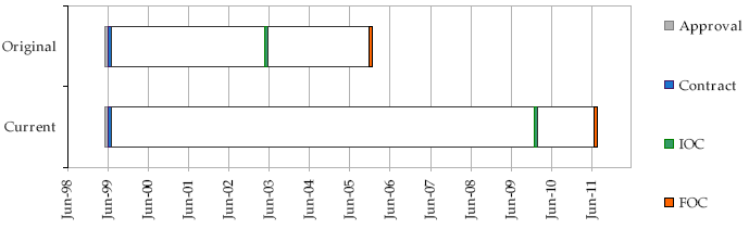 Chief of Navy endorsed the FFGs for IOR in January 2010 with limitations addressed in Table 3.3. Final Operational Capability will be informed by the conduct of Naval Operational Test and Evaluation managed by Navy, with the allocated period now extended to June 2011 (with endorsement by Chief of Navy anticipated in July 2011) to align with the availability of the required test assets and facilities at the Pacific Missile Range Facility (PMRF) in Hawaii. Navy has identified a period in June 2011 for Anti Ship Missile Defence (ASMD) Operational Evaluation firings in conjunction with Project SEA 1390 Ph4 B and the SM-2 Stage 2 (Mid-Course Guidance) Acceptance Test Firings to be conducted by the DMO in Hawaii. The acquisition and installation requirement for an underwater active decoy system was initiated to satisfy operational preparedness requirements but with due regard to the remaining service life of the ships of the class. All agencies continue to work closely and cooperatively to achieve the remaining operational release targets. |