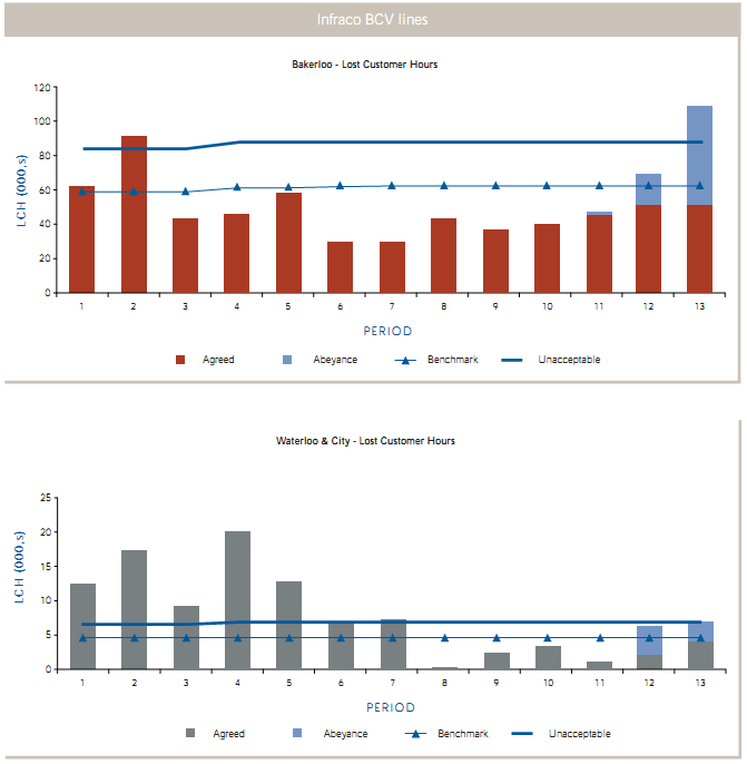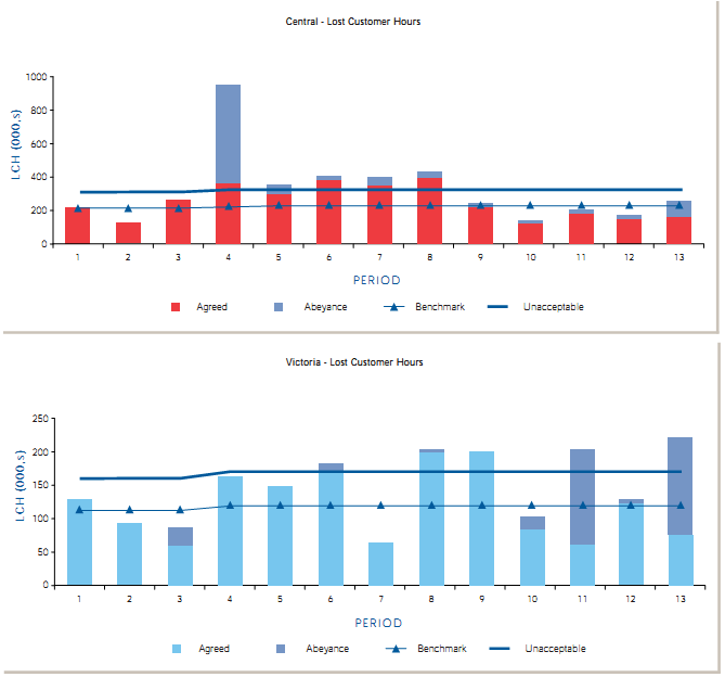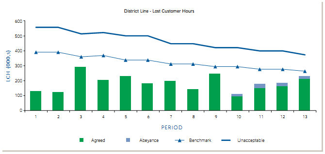 1 The figures above relating to Lost Customer Hours (LCH) are revised each period (28 days in length) as the attribution process reduces the number of LCH in abeyance (still under contractual discussion). A more meaningful picture of performance therefore only begins to emerge at least one or more periods in arrears as incidents are agreed through the fault attribution process (see Figure 9).