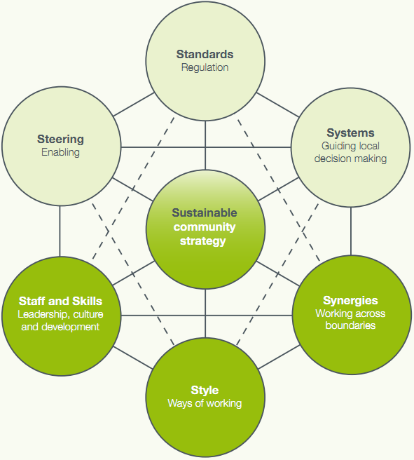 32 The 7S framework stresses the interconnections between the different parts of partnership working. For example, it encourages members to review the connections between style of meetings, the mechanisms that provide performance information, and the standards that ensure they can trust information. For partnerships to be effective, each element of the framework must contribute to the SCS.