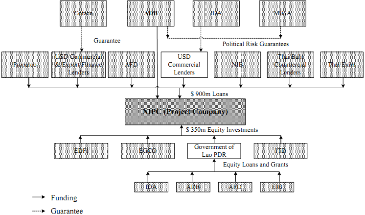 Notes: ADB = Asian Development Bank; AFD = Agence Française de Développement; Coface = Compagnie Française d’Assurance pour le Commerce Extérieur; EDFI = European Development Finance Institutions; EGCO = Electricity Generating Public Company Ltd.; EIB = European Investment Bank; IDA = International Development Association; ITD = Italian-Thai Development PCL.; MIGA = Multilateral Investment Guarantee Agency; NIB = Nordic Investment Bank; Proparco = Société de Promotion et de Participation pour la Coopération Economique.