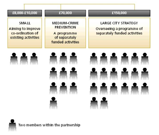 2.17 It is widely recognised that partnership working is a relatively expensive and highly resource consuming exercise. A very limited number of responses to the EPU mapping exercise provided information with regard to the time commitment of NICS staff to supporting partnership. However, these totalled almost 62,000 working days per year, and while the actual time spent by NICS staff supporting partnerships is likely to be significantly higher, this is still a considerable figure. In addition, the Audit Commission estimated the direct and opportunity costs of operating some typical partnerships in 1998 as outlined below in Figure 1.9