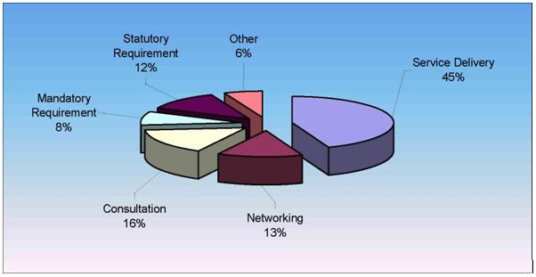 3.20 In response, departments provided additional information in relation to 447 partnerships. As illustrated in Table 7 and figure 3 below, responses indicated that the majority of partnerships had been established to improve service delivery (45%), or to promote consultation, engagement and networking (29%), particularly at district council level.