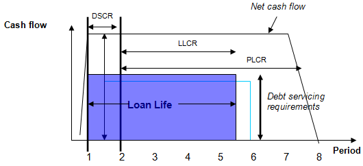 As illustrated in Figure 3 -2 below, cash flow in relation to debt coverage can be calculated over three time periods. (i) historical (DSCR), (ii) remaining life of the loan (LSCR), and (iii) life of the whole project (PLCR)