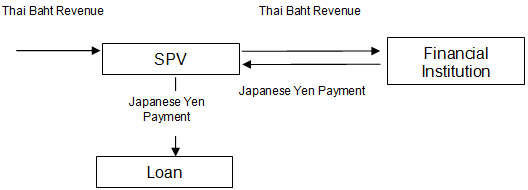 For example, when a liability, such as a loan, is in one country currency but the revenues are in another it causes a currency mismatch exposing the parties to risk caused from exchange rate movements. A currency swap will enable the SPV to swap its local currency revenues for foreign denominated revenues, and like the interest rate swap, the cash flows can be structured to exactly match the loan amounts. As a result future volatility in income resulting from the currency mismatch on this particular loan is eliminated.