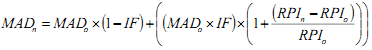 where MADn is the Minimum Availability Deduction applicable for the relevant Contract Year; MADo is £[ ], or, where the relevant Functional Area is Unavailable but Used, is £[ ]; IF is the indexation factor being [ ]%; RPIn is the value of the Retail Price Index published or determined with respect to the month of February which most recently precedes the relevant Contract Year; and RPIo is the value of the Retail Price Index published or determined with respect to the Base Date; | |