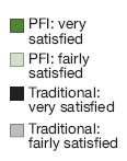 | Most users, irrespective of whether they were a pupil, teacher, governor or caretaker, were pleased overall with their new schools. There was no statistically significant difference between PFI and traditionally funded schools. |