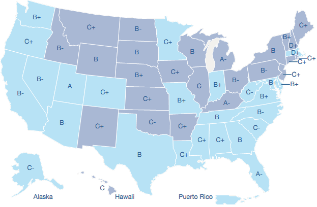 | A-D: Infrastructure quality grades assigned by The Pew Center on the States |