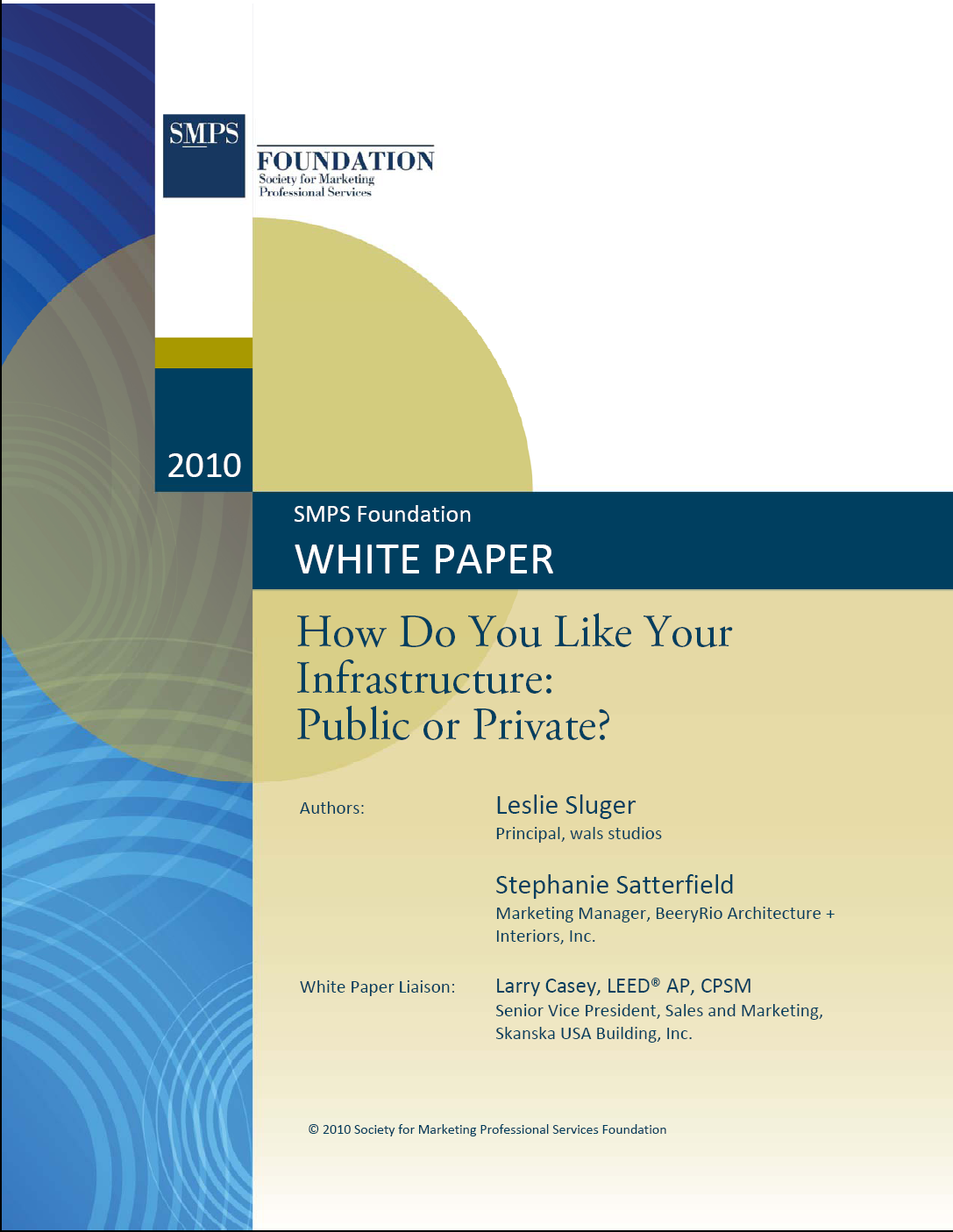 The information in this document is the intellectual property of the Society for Marketing Professional Services Foundation. Reproduction of portions of this document for personal use is permitted, provided that proper attribution is made to the SMPS Foundation. Reproduction of any portion of this document for any other purpose including, but not limited to, any commercial purpose without the express written consent of the SMPS Foundation is strictly prohibited. Society for Marketing Professional Services