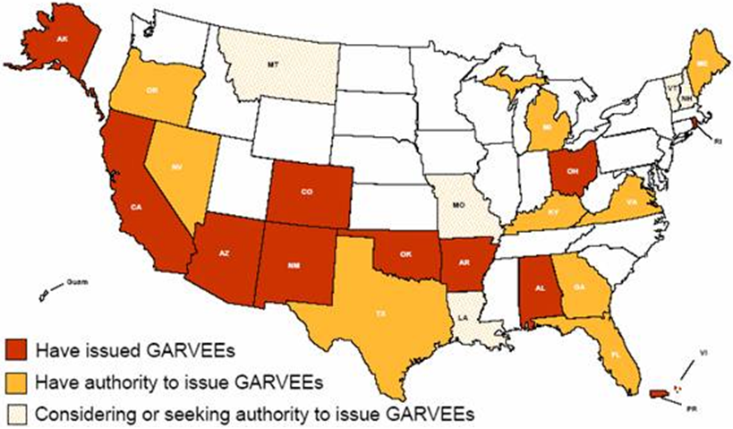 A Grant Anticipation Revenue Vehicle or GARVEE is a debt financing instrument authorized under 23 U.S.C. 122. GARVEEs allow a State, a political subdivision of a State, or a public authority to pledge future Federal-aid highway funds to support the costs related to an eligible debt financing instrument, such as a bond, note, certificate, mortgage, or lease. States can utilize GARVEEs for a wide array of debt-related costs, including interest payments, retirement of principal, and any other cost incidental to the sale of an eligible debt instrument, incurred in connection with an eligible debt financing instrument. GARVEEs essentially enable debt-related expenses to be paid with future Federal-aid highway apportionments. Although not available to private entities, they can facilitate the formation of public-private partnerships by making financing available for transportation projects in a way that could attract greater private sector involvement.GARVEEs can provide an immediate and reliable source of funds that would make a project more attractive to the private sector. In addition, by providing access to this additional funding, GARVEEs can enable States to move forward on a large number of projects within a compressed time period. These projects create a short-term need for additional staff and management of these projects. Since it would not be cost-effective for most States to hire additional staff that would only be needed for a short time, the private sector can be called upon to provide these additional resources during the most active design and construction phases of the projects.