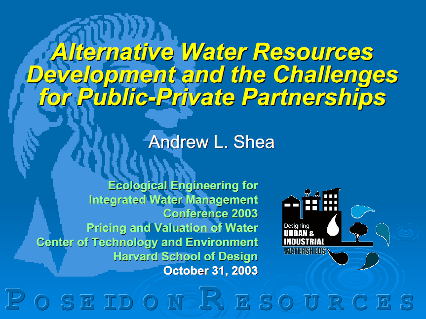 Alternative Water Resources Development and the Challenges for Public-Private Partnerships