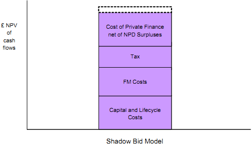 Under a NPD structure, surpluses are distributed for the benefit of the public sector or wider community. Where surpluses are available for distribution within the shadow bid model, this cash flow should be taken into account in carrying out the Value for Money assessment. The cash flow from surpluses should be risk-adjusted to reflect the likelihood that it will occur and discounted back using the discount rate specified within the Treasury's Green Book, consistent with the Unitary Charge cash flow. Further information on the NPD structure is available online at: http://www.scotland.gov.uk/Topics/Government/Finance/18232/NPDExpNote