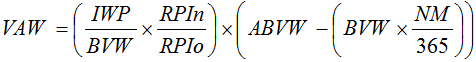 1.3 For the purpose of paragraph 1.1.3 (Volume Adjustment) of this Section F the price adjustment in respect of the volume of Non-Clinical Waste removed in accordance with the Waste Service Specific Specification in any Contract Month ("VAW") shall be calculated in accordance with the following formula: