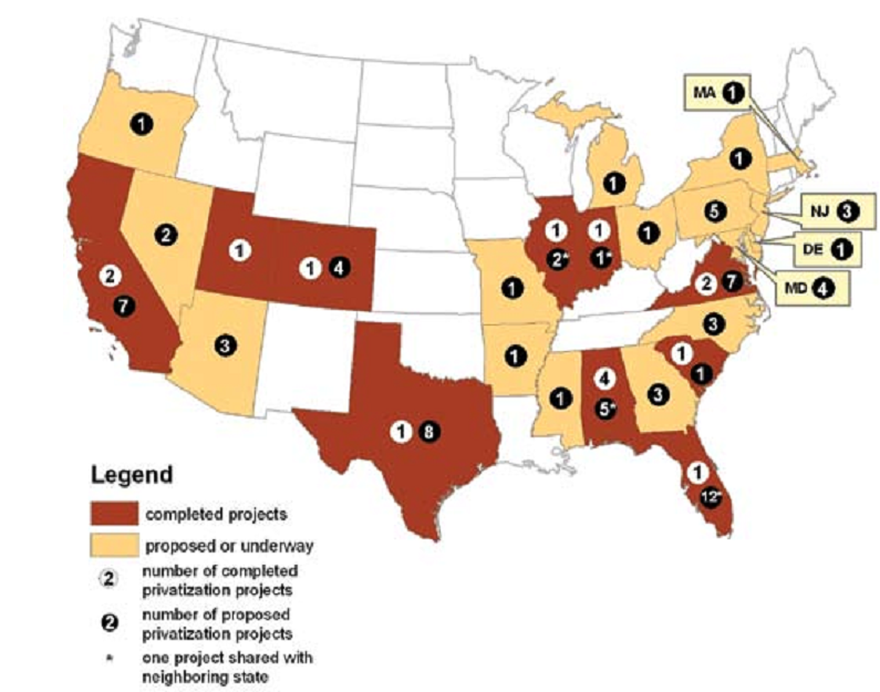 Figure ES-1. Privatization Projects Completed, Underway or Proposed, by State