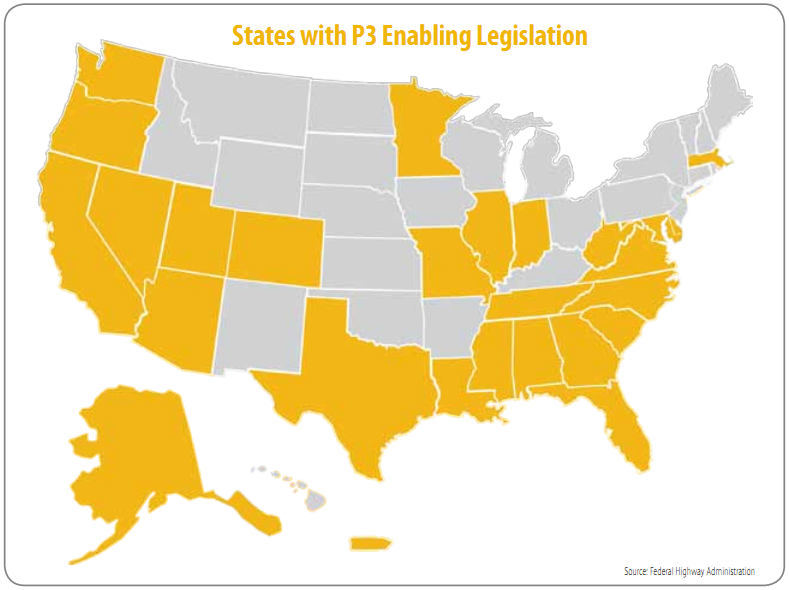 • Long-Term Lease Agreement-These involve leasing an existing facility to a private company for a specified amount of time. The private company usually pays an initial concession fee and must operate and maintain the facility to certain standards. They often collect tolls and keep the revenue to pay bondholders and generate a return on their investment.