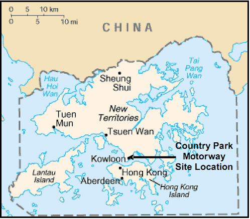 This case study discusses one of the connecting highways (Route 3 Country Park Motorway) which was developed through a Build-Operate-Transfer (BOT) PPP in the mid-1990s. The BOT PPP approach expedited project delivery to meet client schedule needs relative to the takeover of Hong Kong by China from British control in 1997. Another benefit was to expedite generation of funding from tolls to pay for the project cost over the 30 years franchise period. Due to the tight program schedule, a contractor consortium was set up for efficient construction management. Exhibit 4.6 provides an area-wide site map for the project.