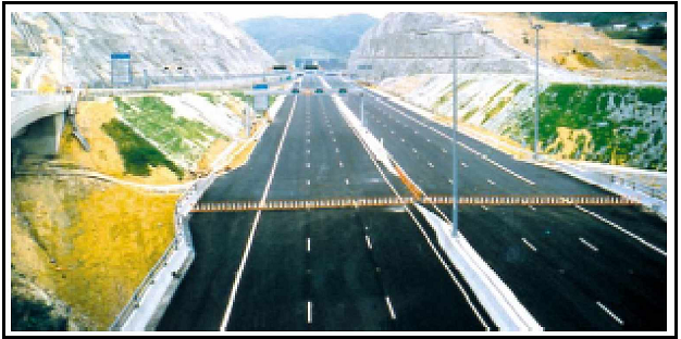 The Country Park Motorway (Route 3) is a 12 km (7.5 mile) three-lane expressway that provides a link between Hong Kong and southern China, connecting Ting Kau and Yuen Long. The project includes twin three-lane 3.5 km (2.3 mile) tunnels below Tai Lam Country Park, 12 major bridge structures, seven pedestrian/vehicular underpasses, 10 major retaining walls, a 22-lane toll plaza, the four-level Au Tau Interchange, and construction of large-scale embankments across very soft and weak soils, 3 km viaducts at Ting Kau Interchange and Au Tau Interchange, noise barriers, traffic control and surveillance system, administration building, and ventilation buildings. The project cost $930 million to complete and was constructed between 1995 and 1998, when it opened to traffic as a tolled highway. Exhibit 4.7 shows the highway under traffic.