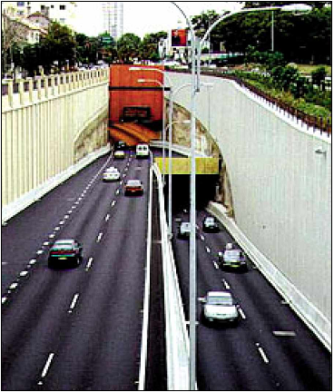 Issues/Results: The unique double-deck tunnel configuration is considered the widest unsupported tunnel span roadway. Exhibit 4.18 shows the tunnel portals for the Eastern Distributor.