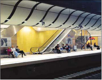 This project provided a new 6.2 miles railway, almost entirely underground, running from downtown Sydney through the Inner South suburbs and Sydney Kingsford Smith Airport to join the CityRail Illawarra Line at Turrella. Five new stations were built including two at the Airport at the Domestic and International Terminals. Exhibit 4.23 shows the International Terminal Rail Station on the Sydney Airport Link.