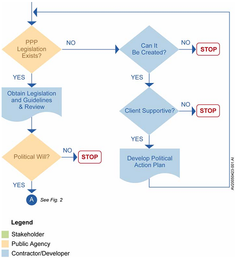 One of the greatest barriers to more widespread use of PPPs is the absence of an appropriate legislative framework to provide specific authority as well as limitations on the use of PPPs. From the Contractor/Developer perspective the absence of required legislation is not necessarily a fatal flaw but rather an additional hurdle that must be considered from a cost, timing and likelihood of success perspective. To the extent that the Contractor/Developer seeks to create or modify the legislative framework, well planned and resourced political action will be required.