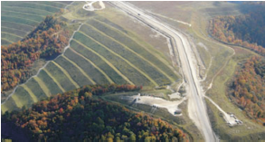 King Coal Highway, West Virginia (Special Negotiated Agreement). Some construction work for this 90-mile, four-lane highway is being done by local mining companies as they extract coal nearby. (Photo: FHWA) |