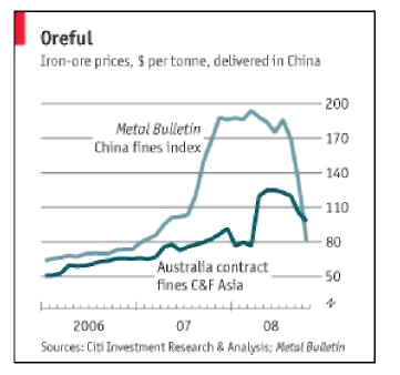 39 "From Gold to Lead," The Economist, 1 November 2008. The "China fines" index refers to Chinese spot - as opposed to contract - prices for iron ore.