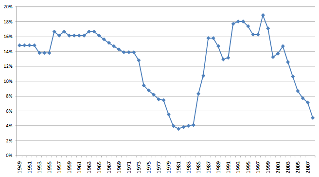 STATEMOTOR FUEL TAX AS A PERCENTAGE OF THE PUMP PRICE 1949-2008