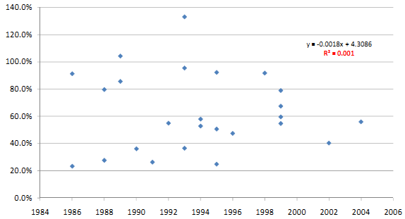 A statistical review of the 23 projects does not show any correlation between time and forecasting accuracy.