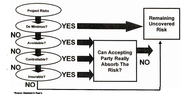 The risk allocation result directly affects the financial feasibility of the project. As depicted in Figure 3, the process used by lenders and credit analysts attempts to identify any risk that remains uncovered by the project participants. Lenders will analyze the project risks and will determine their magnitude and ability to be managed. In the event the "remaining uncovered risks" are significant or unmanageable to the parties in the transaction, the lenders will avoid the transaction.