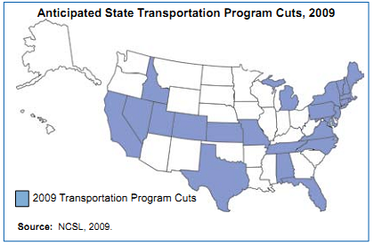 The revenue picture for state legislatures in 2009 is generally bleak, given the economic recession and growing needs in all sectors. Transportation revenue, essentially fat in recent years, now is diminishing as driving declines. Benefits include clean air and congestion relief, but gas tax revenues-still the primary source of state and federal transportation funding-have correspondingly decreased. The funding decline already has forced two dozen states to make transportation program cuts or consider them in the 2009 legislative sessions.