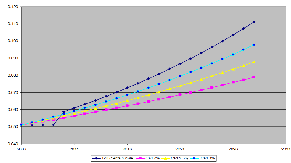Toll versus CPI Indiana Toll Road - Cents per mile