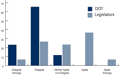 Key Survey Finding: More than 40 percent of legislators and no DOT officials surveyed believed the DOT should be subject to additional oversight and accountability. Note: See page 2 for a description of this survey's methodology and data limitations.