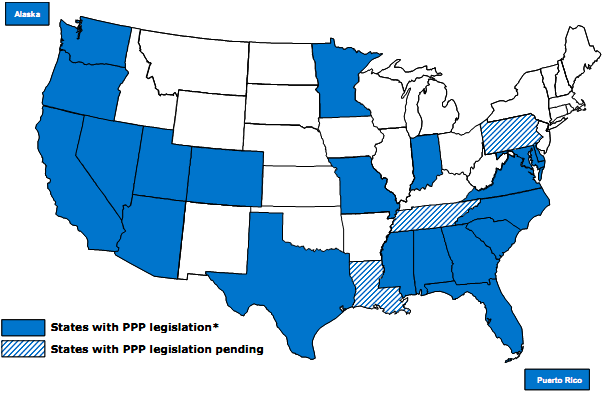 The readiness of state and local transportation agencies to use PPP approaches to transportation project delivery can be inferred by several factors, including having the legal authority to use PPPs, institutional willingness to use design-build project delivery, and participation in various direct user charge initiatives under the FHWA's Value Pricing Pilot Program (VPPP). These factors are important indicators of PPP potential, especially for private provider teams that want assurance that the legal and institutional framework exists to enable the use of PPPs for transportation projects. States where several or all of these factors currently exist are the most likely to consider PPPs to develop needed transportation projects.
