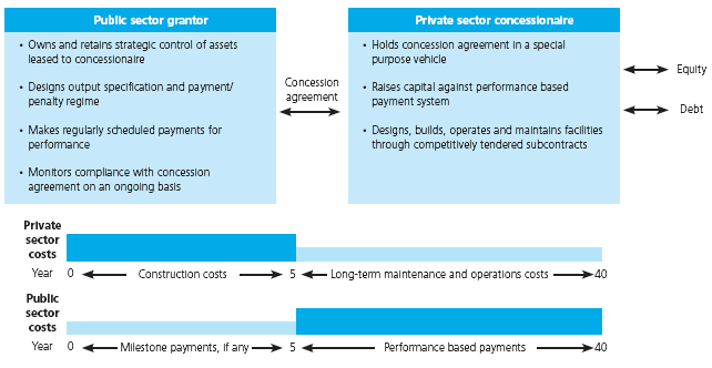 Most infrastructure projects are composed of five elements for which responsibility must be assigned: design, construction, service operation, ongoing maintenance and finance (see nearby box). Theoretically, any of these elements and their related risks can be allocated to either the public sector or the private sector. The shape of that allocation determines the structure of the partnership.