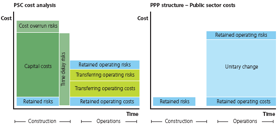 In certain instances, the VFM assessment can be more academic in nature given that without adequate public sector funds, the project may not be deliverable unless private sector funds are made available under a PPP structure. In those cases, the PSC should still be developed and the VFM analysis carried out to better understand the potential differential between the two options were public funds available. The key decision will depend on the affordability of the private sector option relative to the level of public sector funds available. While this is not ideal, it nonetheless is a reality in many countries around the world.