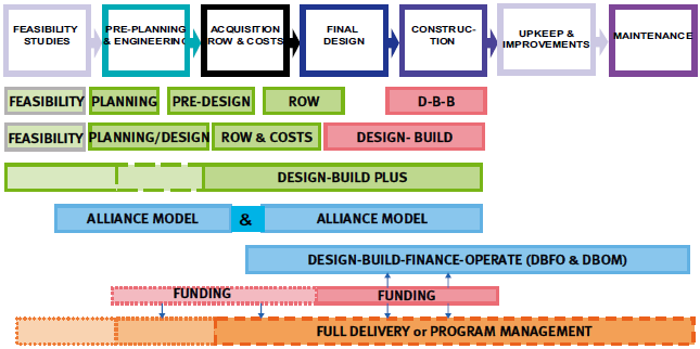 Figure 1 shows the main delivery models and the integration of the planning process through construction and maintenance.