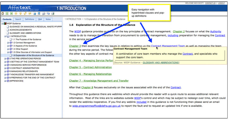 And last but not least, Affinitext provides pop-up definitions for all defined terms in the documentation. Simply click on any blue link to view that word's definition as a pop-up.